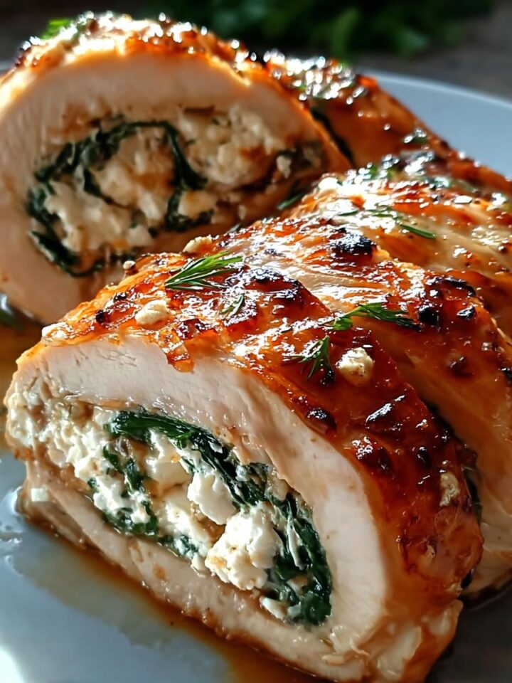 Juicy Rolled Chicken with Feta & Spinach