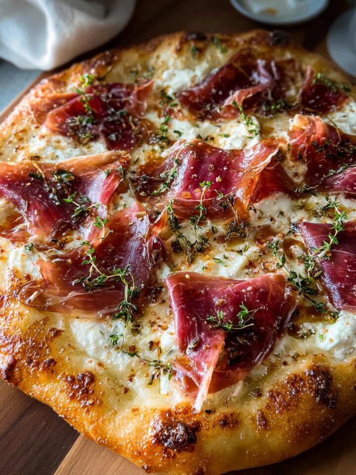 White Pizza with Beef Prosciutto Hot Honey
