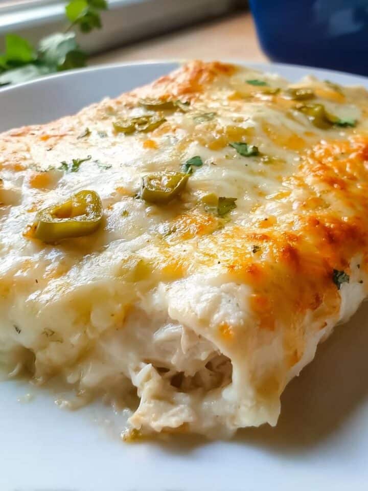 Cheesy Creamy White Chicken Enchiladas